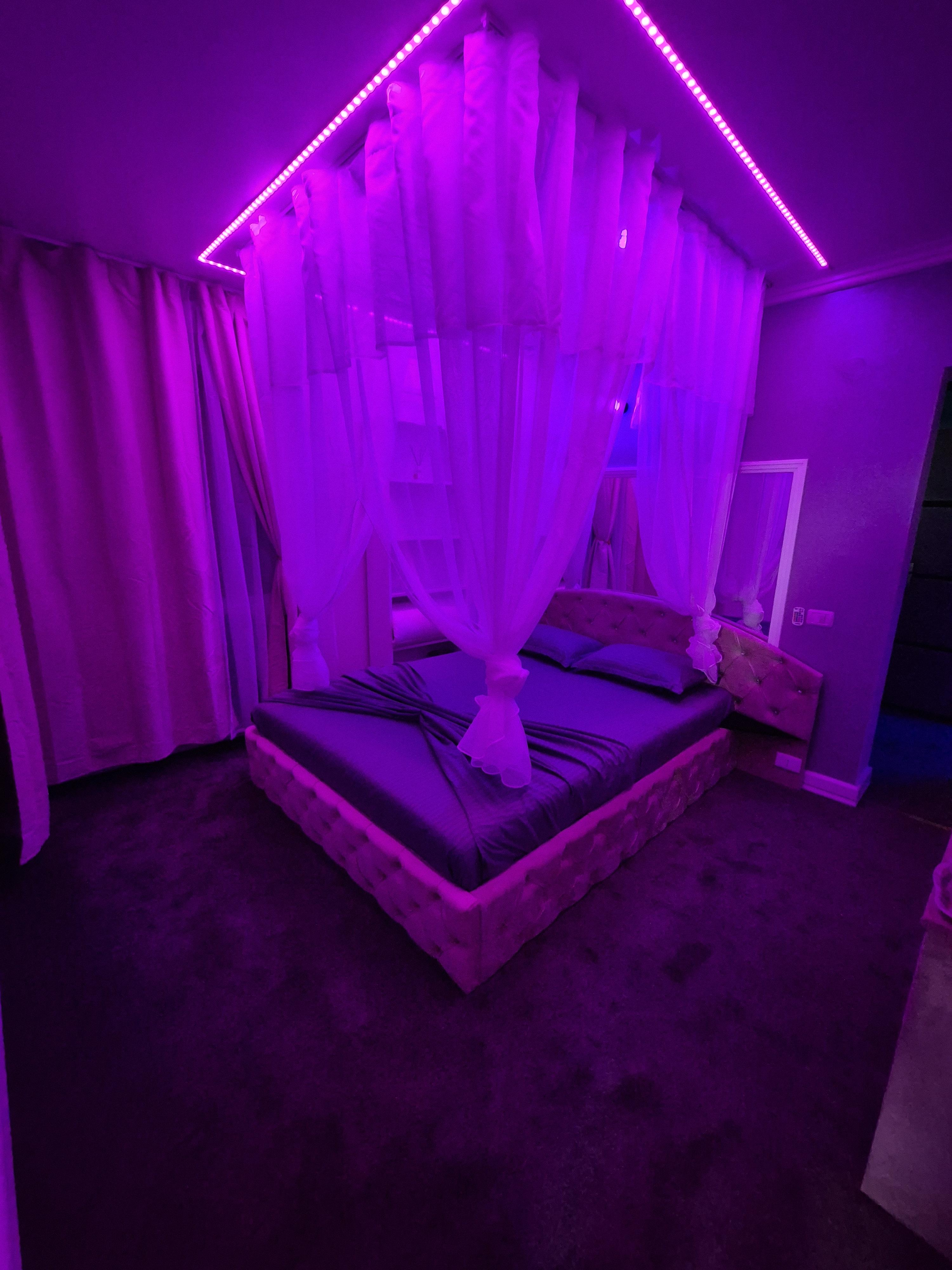 Aceasta camera are o suprafata de 35mp, pat cu baldachin, TV smart, masina de cafea, prosoape, articole de baie, sistem pentru muzica, bara de dans , iar baia este prevazuta cu cada.